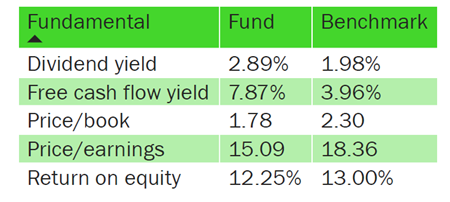 Notre stratégie applique un cadre systématique ascendant qui sélectionne les actions en fonction de signaux fondamentaux : génération de flux de trésorerie disponibles, stabilité des bénéfices, discipline du capital et valorisation. Cette orientation de style cohérente conduit à un portefeuille différencié avec des caractéristiques fondamentales plus solides par rapport à l'indice de référence.